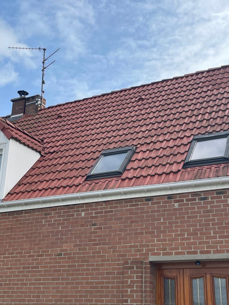 Traitement hydrofuge : entretien complet d’une toiture en tuiles terre cuite rouge à Douai